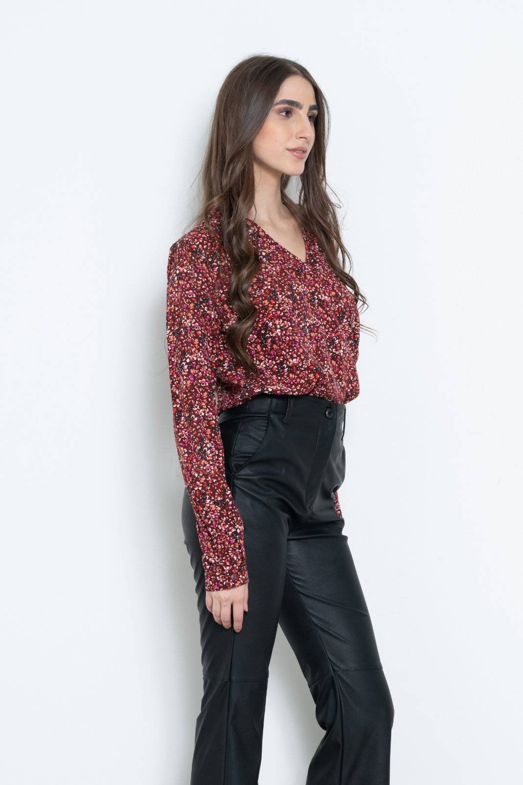 Μπλούζα μπορντό φλοράλ από βισκόζη