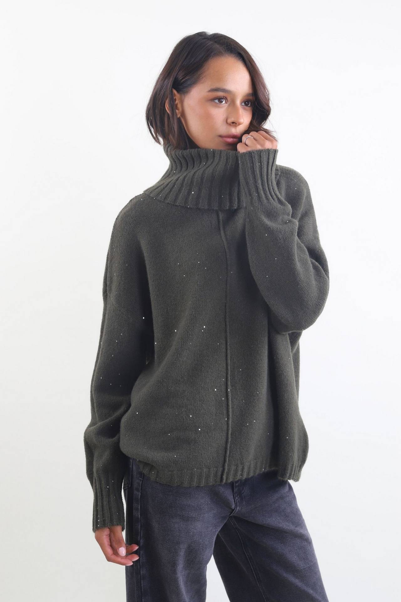 Πλεκτή μπλούζα ζιβάγκο με πολύ μικρές και διακριτικές παγιέτες μέσα στην πλέξη.