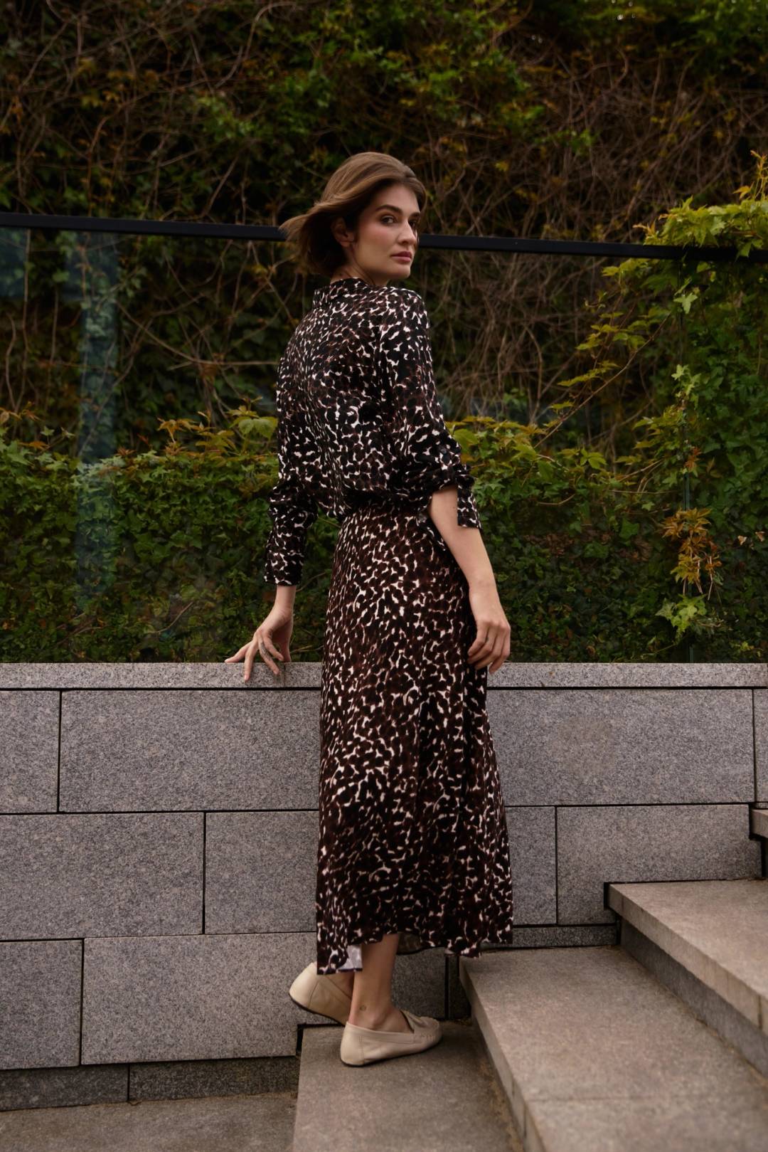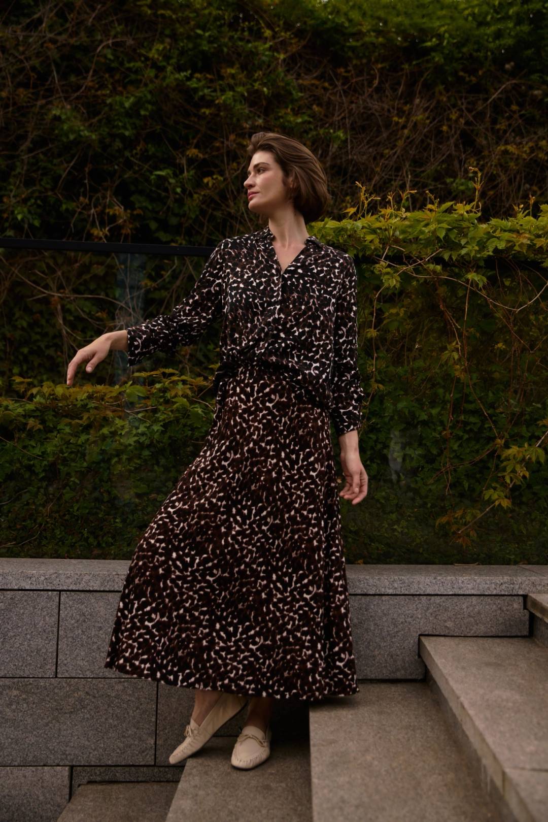 Φούστα μίντι λεοπάρ σε εβαζέ γραμμή. Διαθέτει λάστιχο στη μέση.