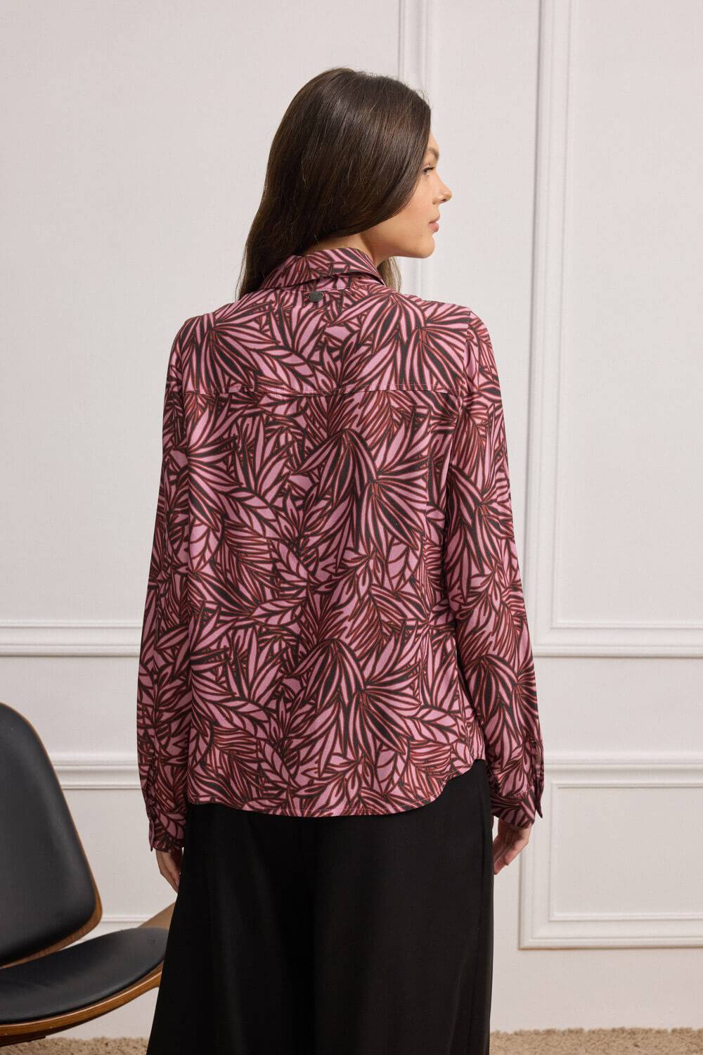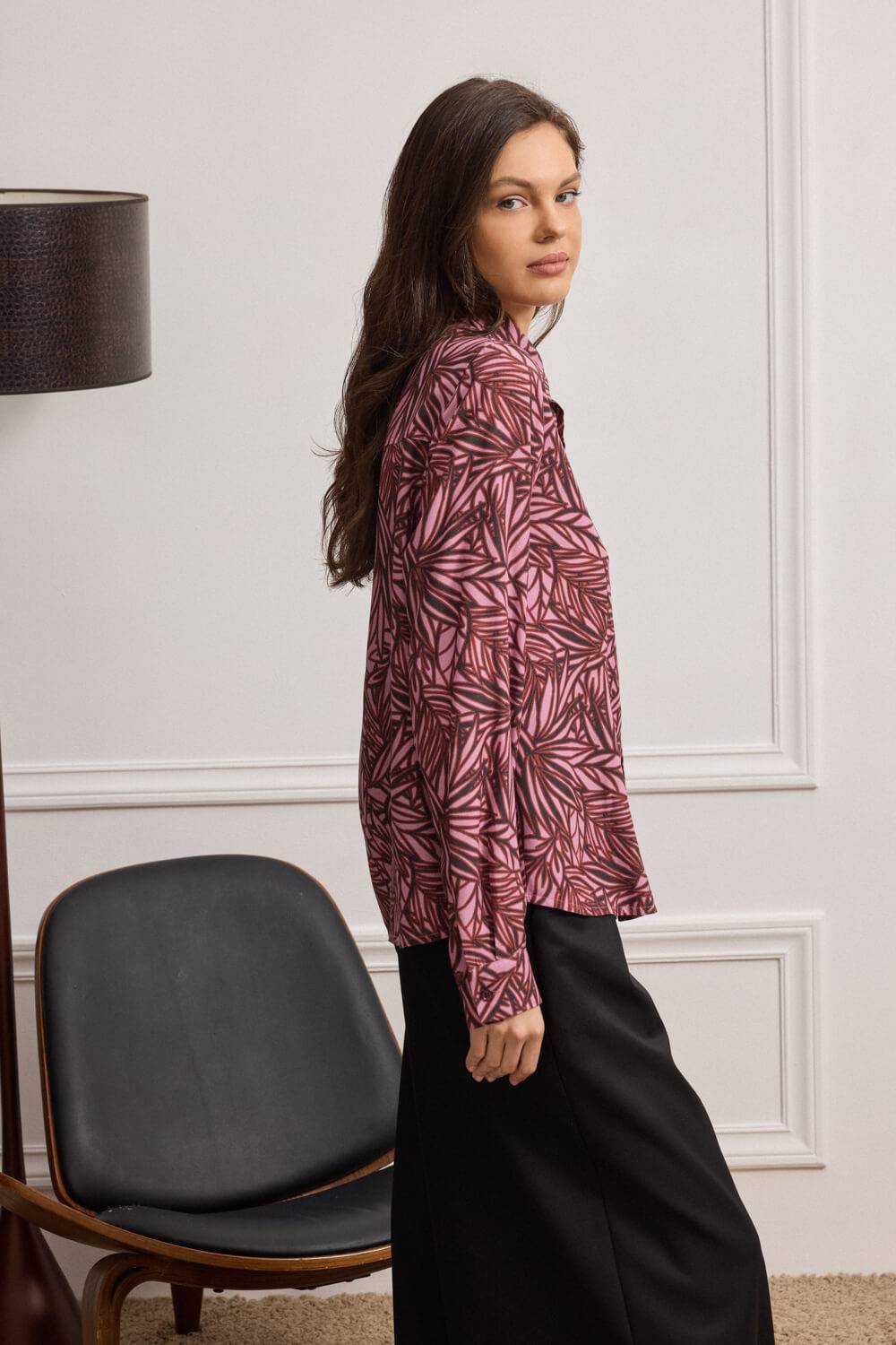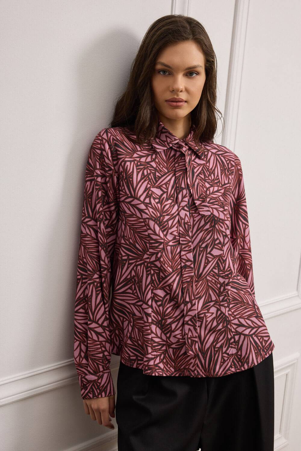 Πουκάμισο ροζ με print και διακοσμητικό δέσιμο